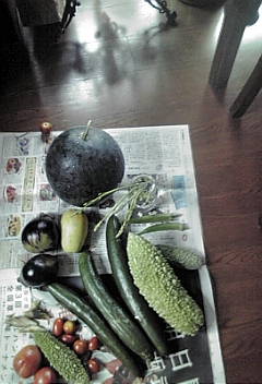 親が居なくっても野菜は育つ! 2009 年 8 月 7 日未分類09-wankiti ばぁちゃんの畑の野菜です。 入院して5日目です。 野菜は勝手に育っています。 あー!育ち過ぎてます。 「食べて!」と、ばぁちゃんから メールが有ります。 スイカ、瓜、トマトにミニトマト、ピーマン 茄子にアスパラに獅子唐、ミョウガ 巨大化したキュウリとゴーヤ 「あーお腹いっぱい!」 見ているだけで食べた気分、満腹です。 今夜から友人が来ます。 連日連夜、野菜パーティーですね。